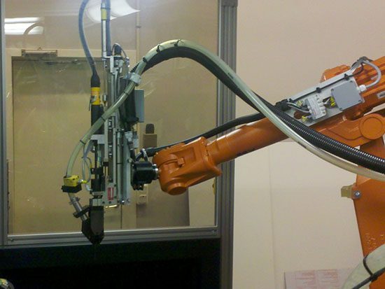 Två ABB robotar med verktygsväxlare jobbar sida vid sida för att montera skruv. Robotarna har stora rörlighet och monterar skruv både horisontellt och vertikalt. Systemen har bestyckats med vakuumplocksats som innebär att ett vakuumrör trycker skruven ur munstycket och sedan går ner och äntrat skruven i produkten. Detta bidrar till god åtkomlighet.